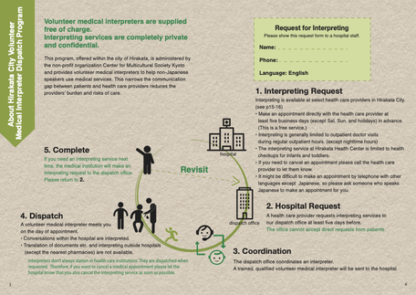 (医療機関が初めて通訳を依頼する場合、手続きに時間がかかるので早めに医療機関にご相談ください。)